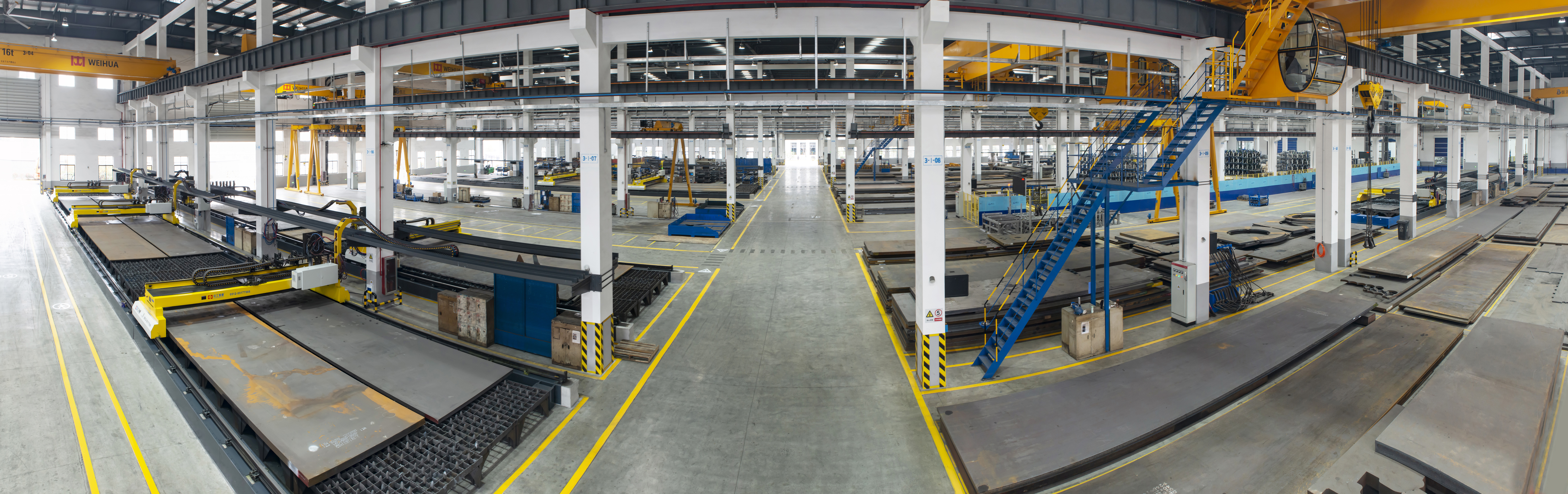 下料車間占地面積為23000平方米,擁有激光切割12臺、三維激光切割2臺、數(shù)控火焰切割10臺、小型火焰切割機(jī)數(shù)十臺,員工140余人,年加工能力達(dá)30萬噸。